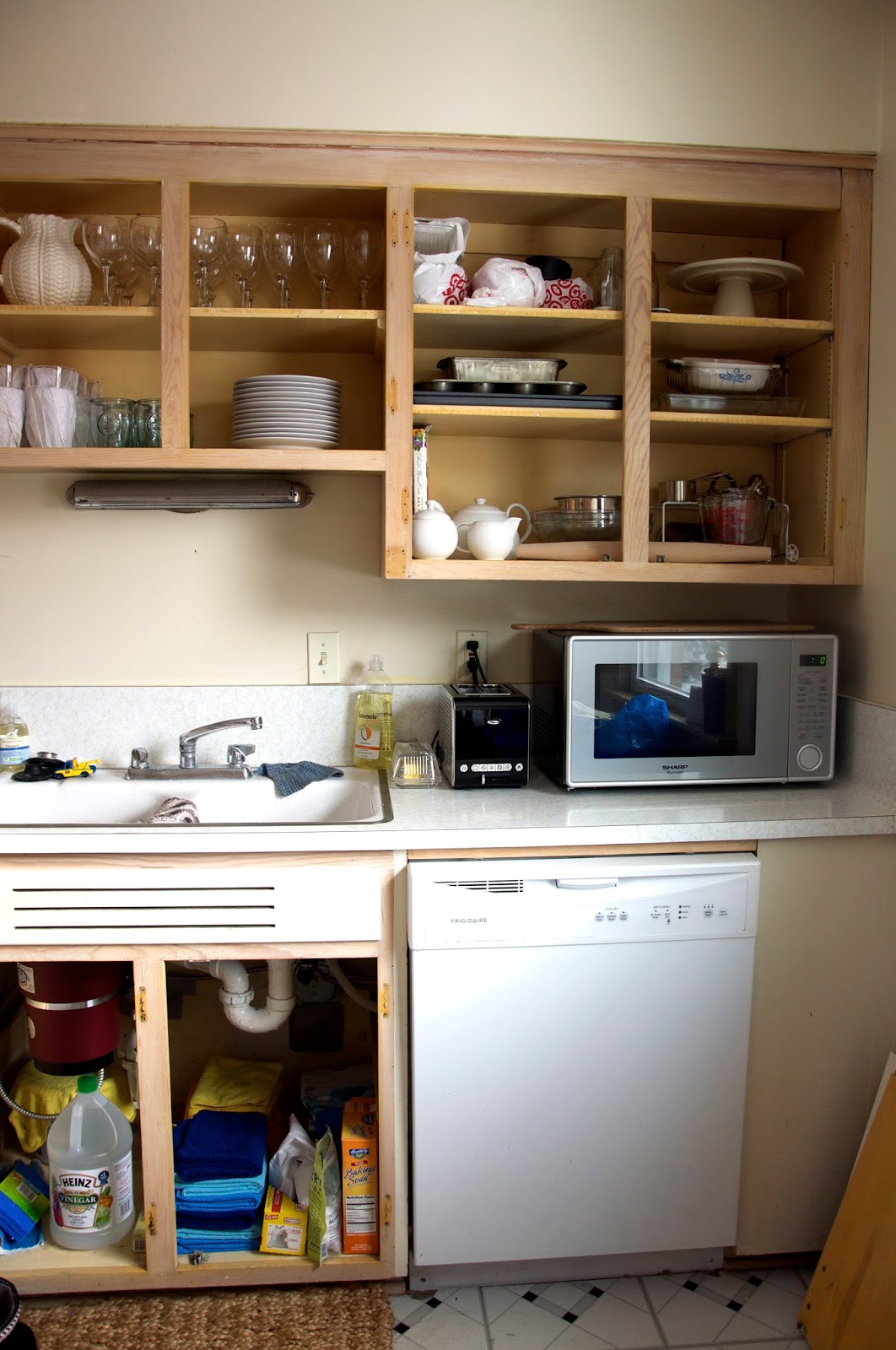 All the cabinets had been degreased and sanded. I had filled them with my dishes even though I knew Id just have to take them all back out in order to prime and paint in the near future but as I couldnt afford the paint just yet, I didnt mind. My countertops were cleared and situated. The kitchen was functioning now even if it wasnt fully finished. My living space continued to have little projects like a pile of books here and a couple of boxes there. My bedroom on the other hand was a disaster.